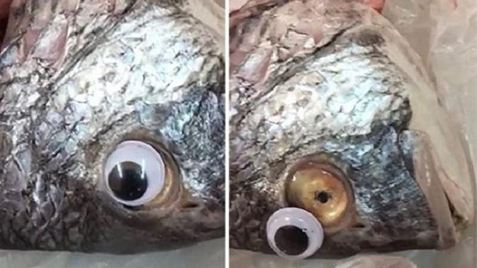 Dalam video yang berhasil diunggah oleh akun Facebook, Ayaman Mat, ikan yang telah dibeli itu hendak dicuci namun saat disentuh pada bagian matanya terlepas. Barulah diketahui bahwa mata ikan tersebut hanya tempelan mata mainan saja.