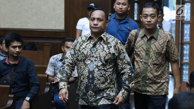 Ketua DPRD Kepulauan Sula Periode 2009-2014, Zainal Mus usai menjalani sidang dakwaan di Pengadilan Tipikor, Jakarta, (22/11). Zainal Mus didakwa melakukan perbuatan korupsi pengadaan lahan Bandara Bobong, Maluku Utara. (Liputan6.com/Helmi Fithriansyah)