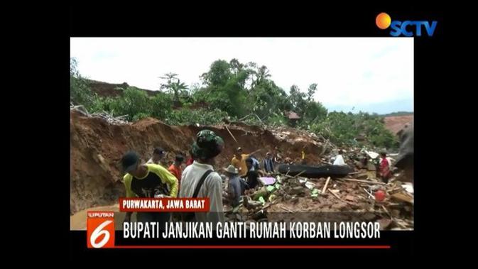 Liputan6SCTV, Purwakarta - Pemerintah Daerah (Pemda) Purwakarta, Jawa Barat, menjanjikan membangun kembali rumah semua korban bencana longsor yang terjadi di Kampung Krajan, Desa Salam Jaya, Kecamatan Pondoksalam.