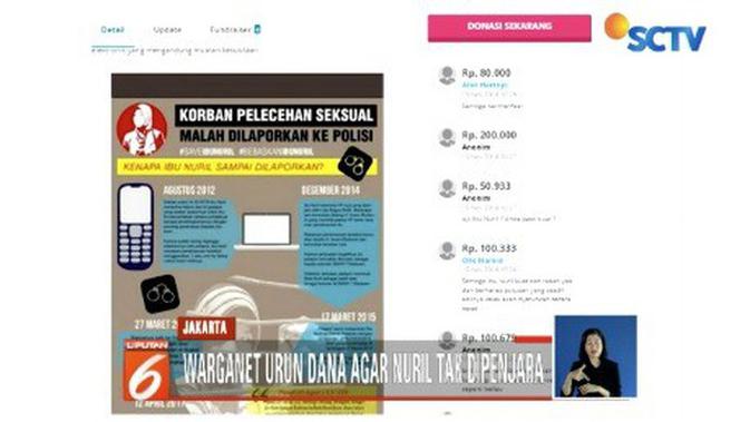 Liputan6SCTV, Jakarta - Prihatin atas kasus hukum yang menimpa Nuril, warganet menggalang dana lewat sebuah situs agar Nuril bisa bebas. Kini jumlah galangan dana mendekati angka Rp 100 juta.
