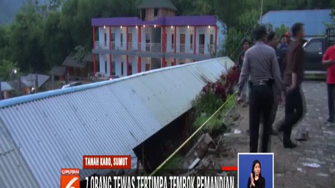Seperti ditayangkan Liputan6 SCTV, Senin (3/12/2018), Polres Tanah Karo menerjunkan Tim Inafis di lokasi wisata air panas Daun Paris di Desa Semangat, Kecamatan Merdeka, terkait robohnya tembok penahan.