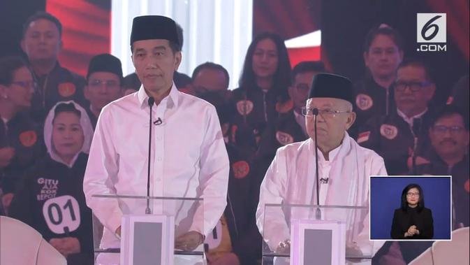 Liputan6.com, Jakarta - Calon Presiden nomor urut 01 Jokowi menanggapi pertanyaan yang untuk pasangan calon nomor urut 02, Prabowo-Sandiaga Uno.