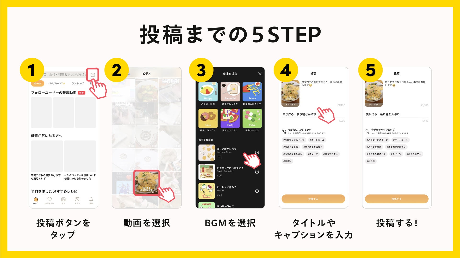 1.「クラシル」アプリの投稿ボタンをタップする